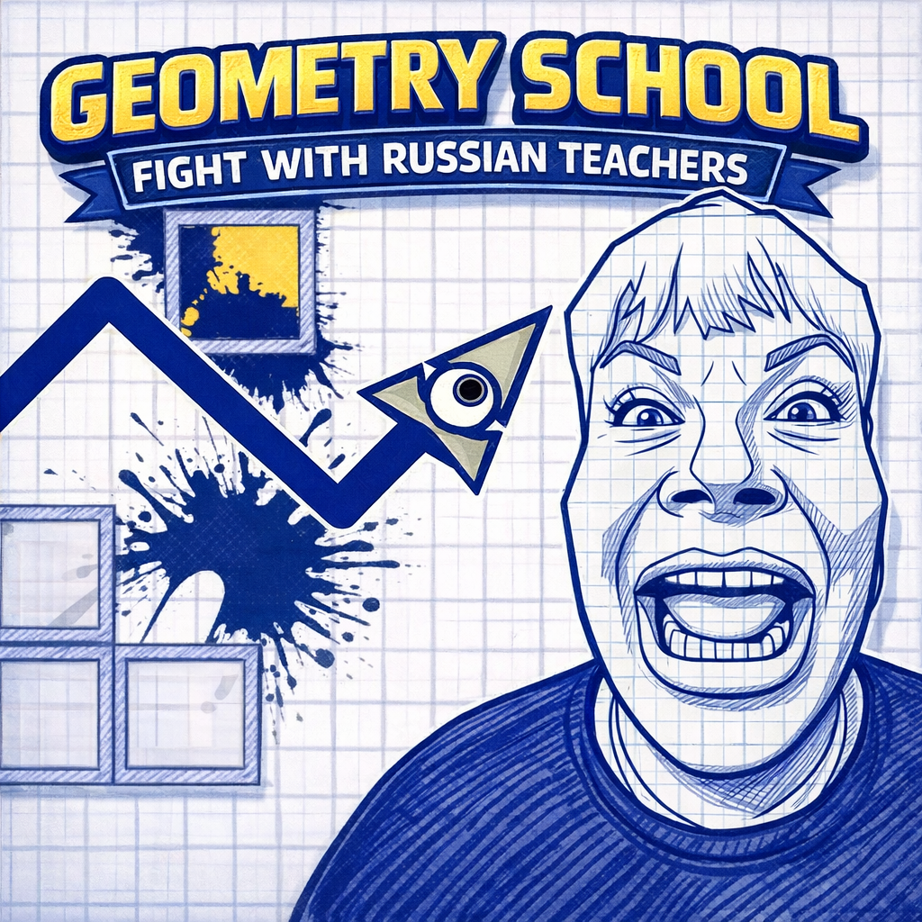 The atmosphere in Geometry School: Fight With Russian Teachers resembles a fast-paced platformer adventure. A small paper airplane must overcome a series of obstacles and strict teachers.